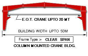 Following are some of the very commonly used and economically planned Primary Structural framing configurations. Many more framing conditions and combinations can be offered to suit your exact requirements of larger clear spans , curved roof , heavy crane mounted structural system for up to 100 M.T. lifting capacity E.O.T. cranes and high-rise multi-storey floor systems as well. NISA Metal Buildings are the most versatile range of Pre-Engineered buildings available to you.